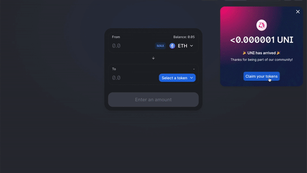 400 UNI are claimable by each address that has ever called the Uniswap v1 or v2 contracts. This includes ~12,000 addresses that have only ever submitted failed transactions — love you guys.